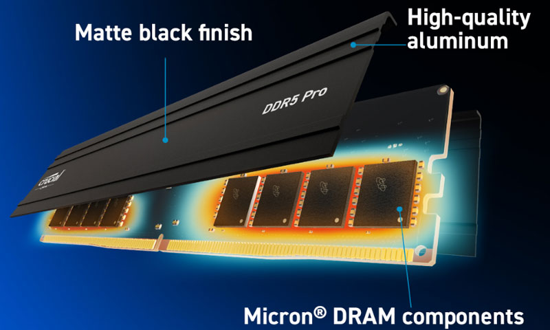 CRUCIAL PRO 16GB DDR5 5600Mhz RAMLARDA DÜŞÜK PROFİLLİ ISI YAYICI TASARIMI