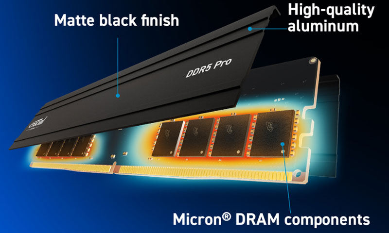 CRUCIAL PRO 32 GB DDR5 RAMLARDA DÜŞÜK PROFİLLİ ISI DAĞITICI TASARIM