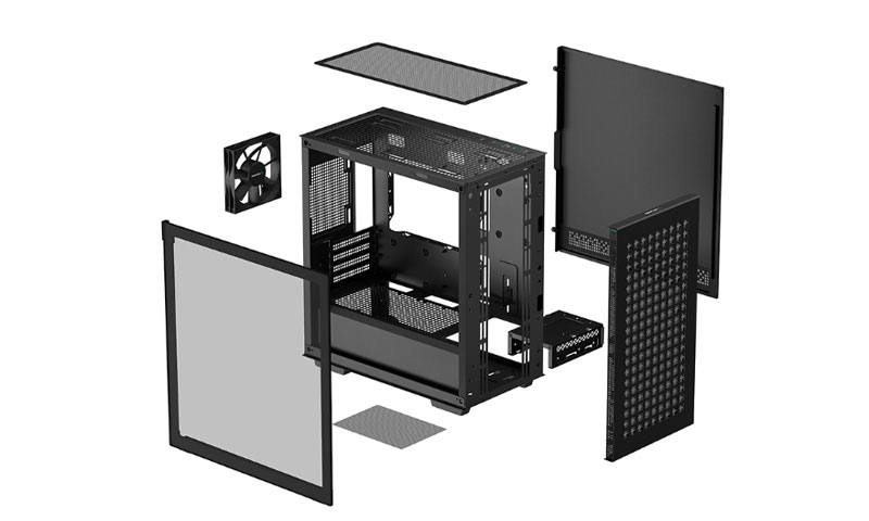 Yüksek hava akışına sahip ön panel, yeterli soğutma sağlar ve gelecekteki yükseltmeler için genişleme seçenekleri sunar. Ön panelde, estetik amaçlı kaydırılabilir bir plastik ek parça bulunur.