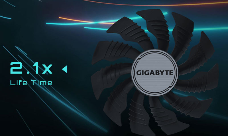 Gigabyte, iki fan arasındaki hava akış yönünün aynı olmasını sağlamak için bitişik fanları ters yönde döndürür. Bu yöntem, türbülansı azaltır ve hava akış basıncını önemli ölçüde artırır.