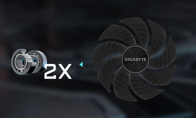 Çift bilyalı fan yatağı, klasik kaymalı yatak yapısına göre daha uzun ömürlüdür ve yüksek sıcaklıklarda daha verimli çalışır. Bu da kartınızın daha uzun süre sessiz ve güçlü kalmasını sağlar.