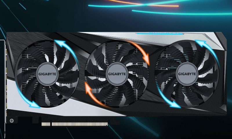 GIGABYTE’ın akıllı tasarımı sayesinde bitişik fanlar ters yönde döner, böylece hava akışı aynı yönde ilerler. Bu durum türbülansı azaltırken hava basıncını da önemli ölçüde artırır.