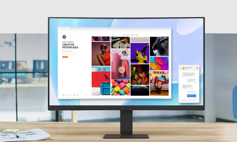 LG 24U421A-B kavisli monitörlerle ince tasarıma sahip stand, minimum yer kaplayarak masanızda daha fazla alan kazanmanıza olanak tanır. Böylece düzenli, ferah ve odaklanmayı kolaylaştıran bir çalışma ortamı elde edersiniz.