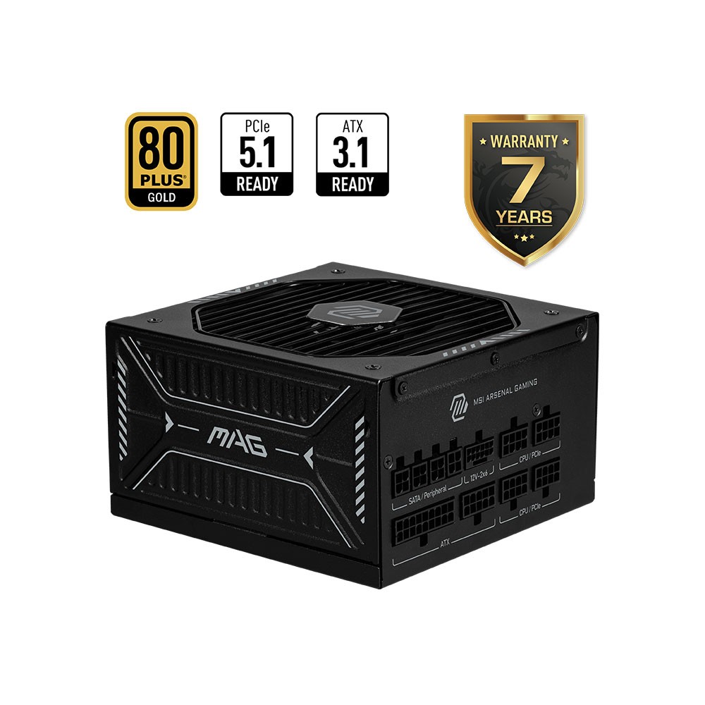 MAG A1000GLS PCIE5 güç kaynağı, 80 PLUS Gold sertifikalı güç verimliliği, RTX 50 serisi ekran kartlarına destek veren yerleşik 12V-2x6 konnektörü ve ATX 3.1 uyumluluğu ile gelir. Soğutma çözümünde kullanılan 135 mm FDB (akışkan dinamik rulmanlı) fan ile üstün bir performans sunar.