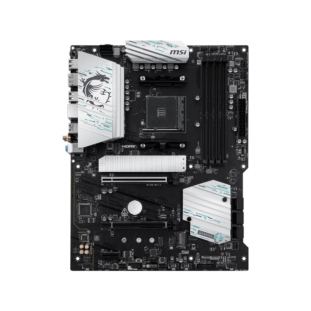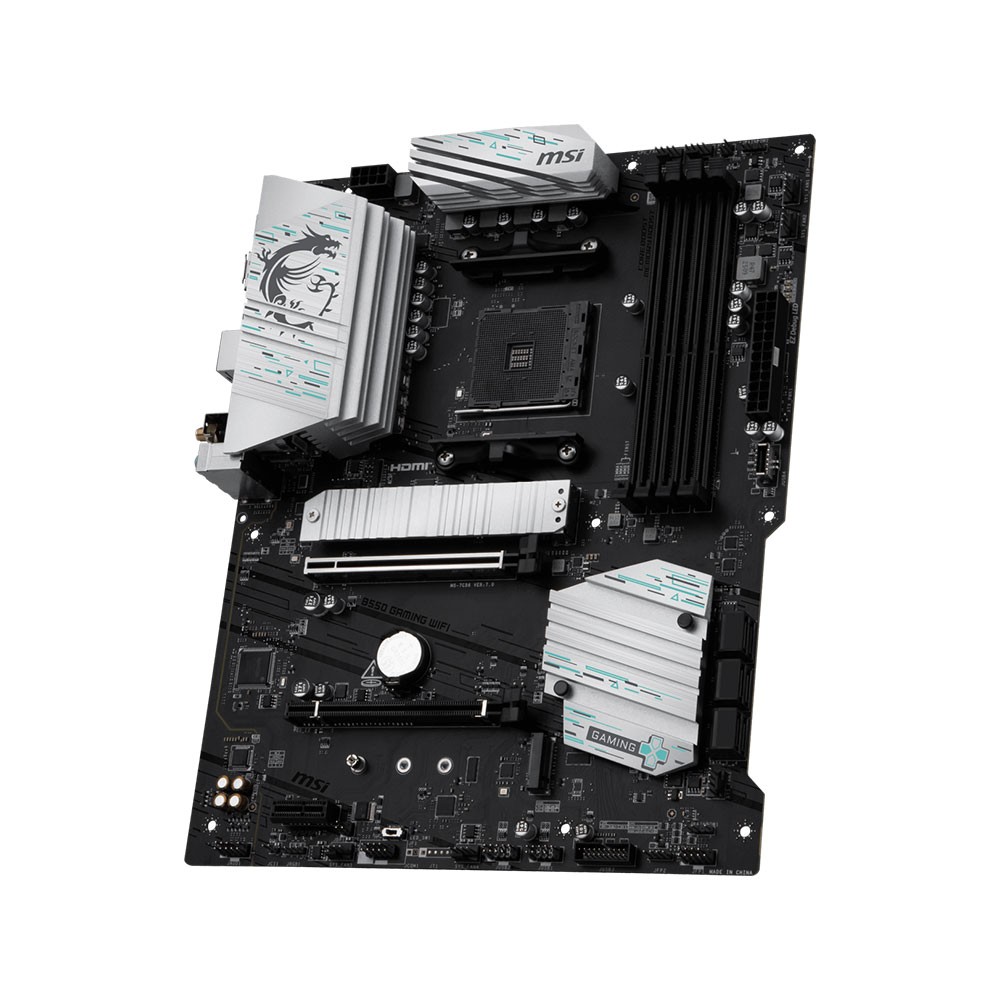 B550 GAMING WIFI, 10 DRPS güç sistemi ve AMD B550 yongaseti ile AMD Ryzen 5000 serisi işlemcileri destekleyen, PCIe 4.0, 1G LAN, Wi-Fi 5 ve DDR4 ile birinci sınıf donanımı uygun bir fiyata sunan bir ATX anakarttır.