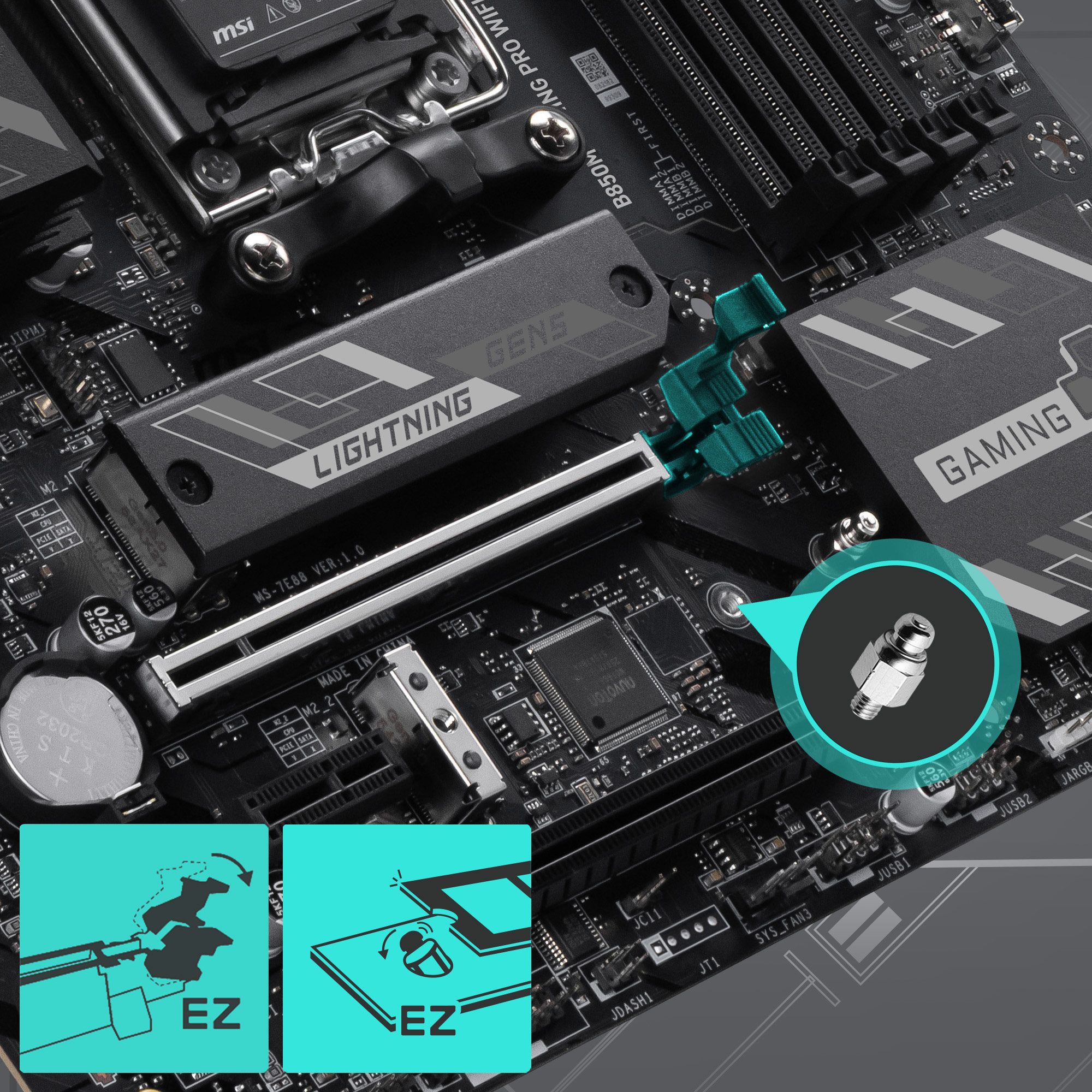 The B850M GAMING PRO WIFI6E anakart, MSI’ın M.2 slotları ile gelir: