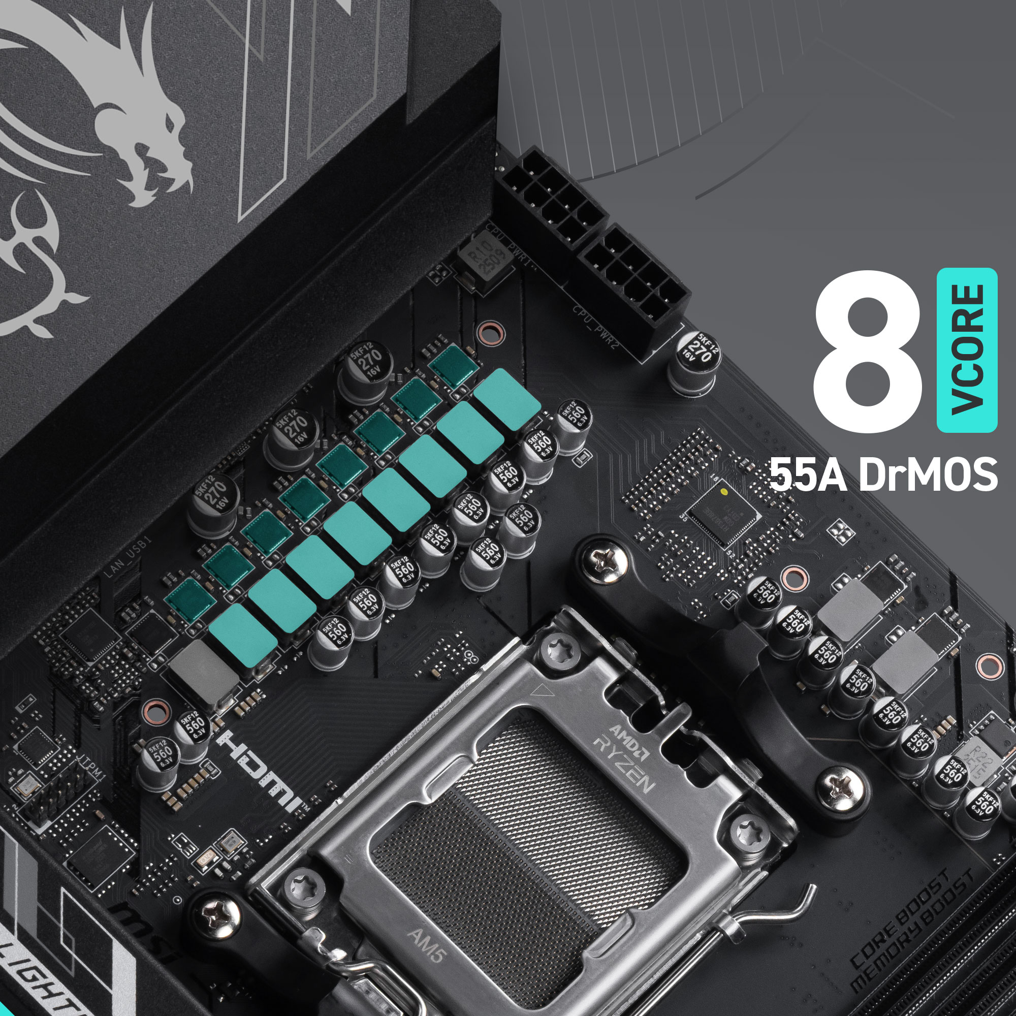 Özel Core Boost teknolojsi ve 8pin güç konnektörleri ile B850M GAMING PRO WIFI6E anakart ağır CPU yüklerini sürekli olarak destekler ve talepkar oyun ayarlarını rahatlıkla kaldırabilir.: