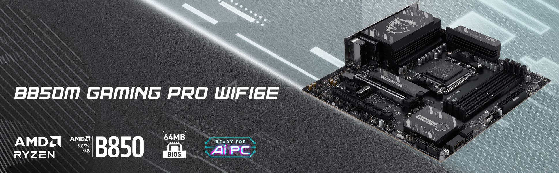 B850M GAMING PRO WIFI6E anakart AMD Ryzen 9000 / 8000 / 7000 serisi işlemcileri destekler