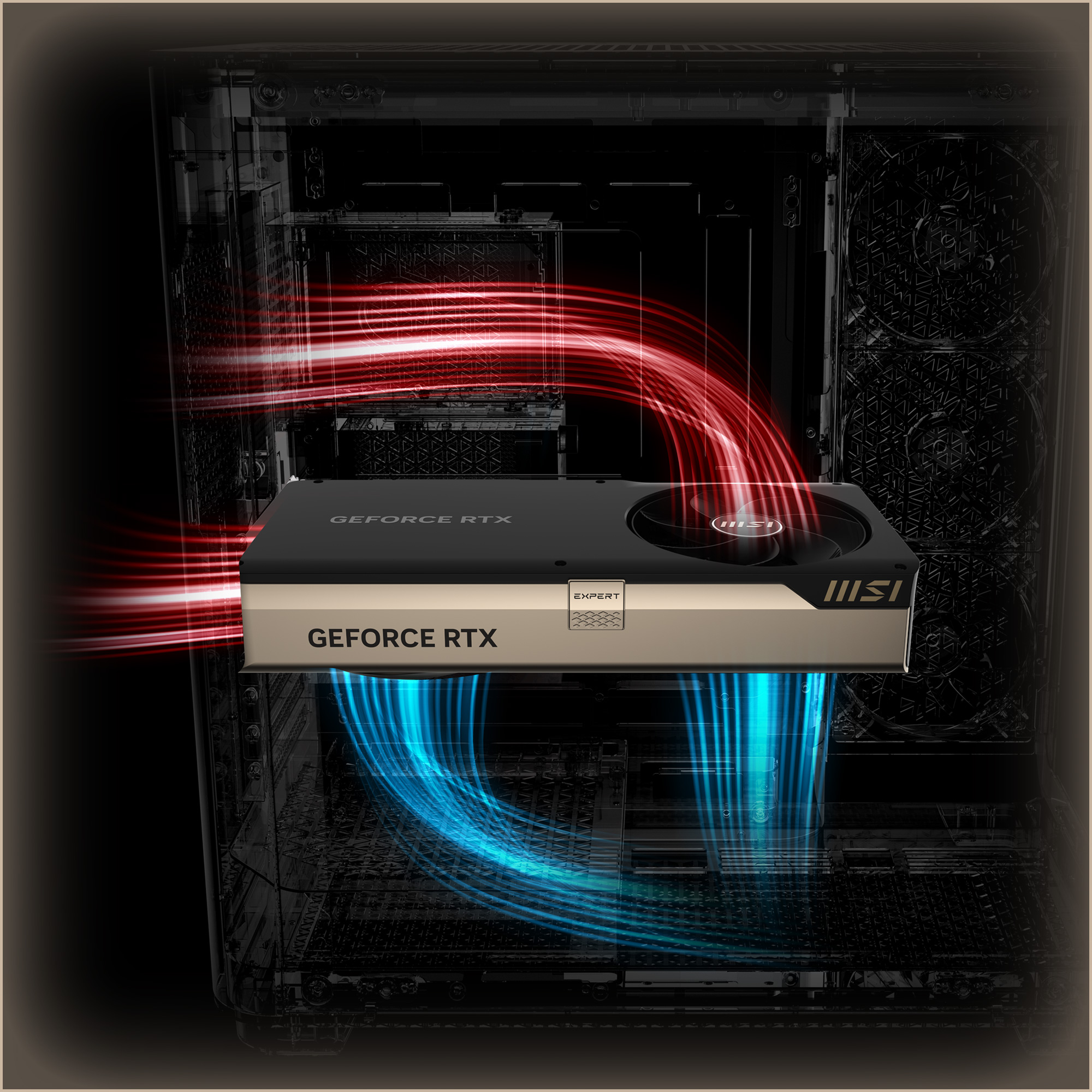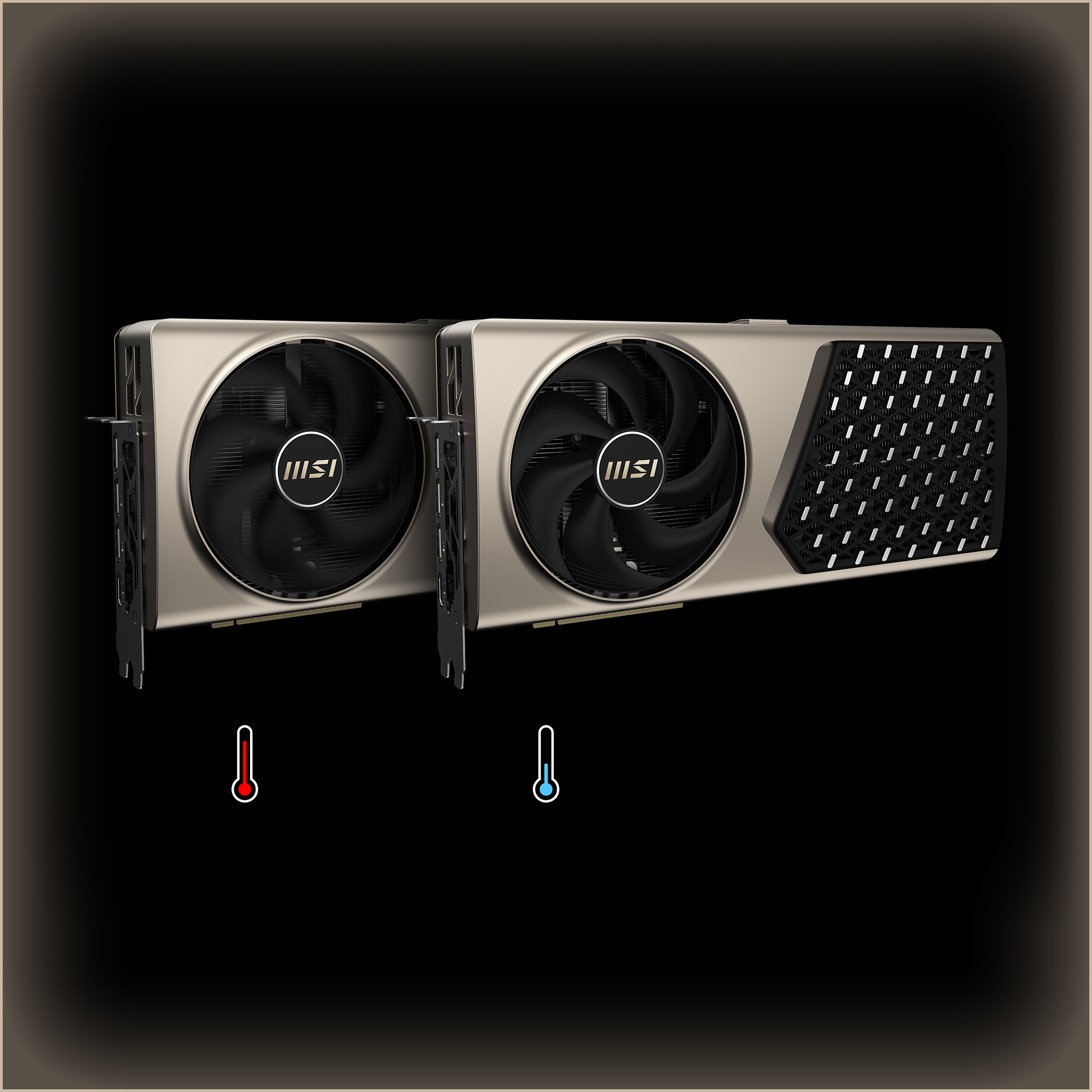 Sessizlik ve performans için üretilen MSI FLOW FROZR 2 termal tasarımı, özel olarak üretilen fanlar ile “push-pull” (hava itme-çekme) konfigürasyonunda çalışarak sıradışı termal performans sunar. Bu özellik ekran kartınızın uzun süreli yoğun işyükü altında serin ve sessiz çalışmasını sağlar.