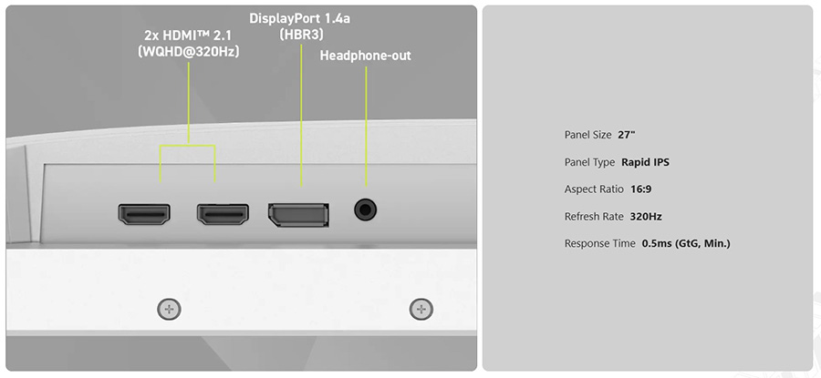 MSI MAG 274QRFW X32 27" 320Hz 0.5MS (Min.) 2560x1440 (WQHD) RAPID IPS FREESYNC Pivot Beyaz Gaming Monitör Özellikleri