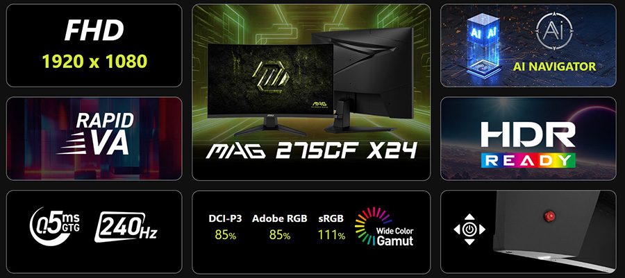 MSI MAG 275CF X24 27" 240HZ 0.5MS (Min.) 1920x1080 (FHD) Rapid VA Adaptive-Sync Kavisli Gaming Monitör Özellikleri