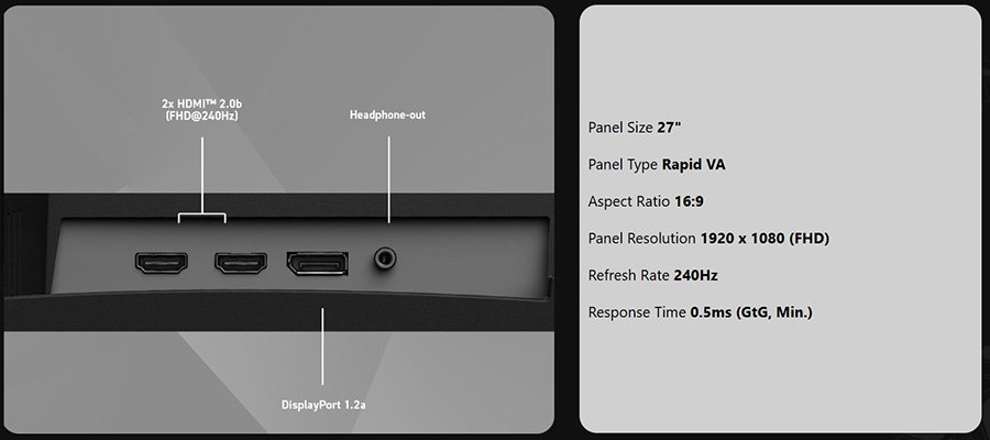 240Hz tazeleme hızı ve 0.5 ms (MPRT) tepki süresi ile FPS, savaş, yarış, gerçek zamanlı strateji ve spor gibi hızlı hareket gerektiren oyun türlerinde büyük avantaj sağlar.