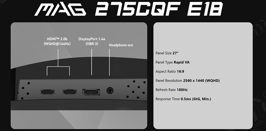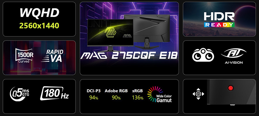 MSI 27" MAG 275CQF E18 180HZ 0.5MS 2560x1440 (WQHD) Rapid VA FreeSync Kavisli Gaming Monitör Özellikleri