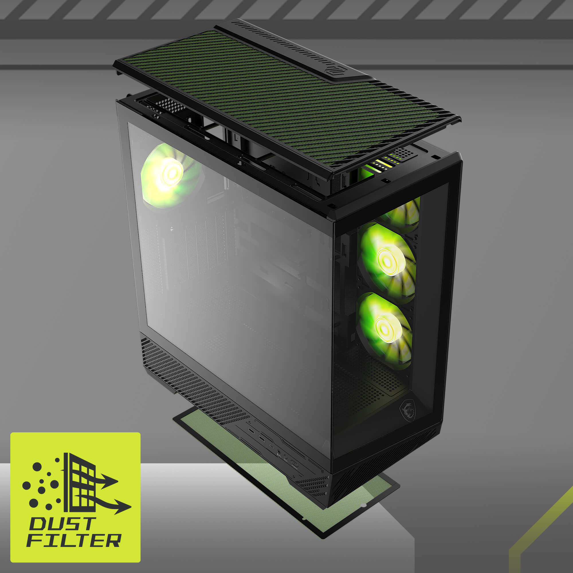 Bu kasa üst ve altta bulunan iki adet çıkarılabilir filtre ile kolayca temizleme olanağı sunar. Böylece iç bileşenlerinizin toz toplamasını engelleyebilirsiniz.