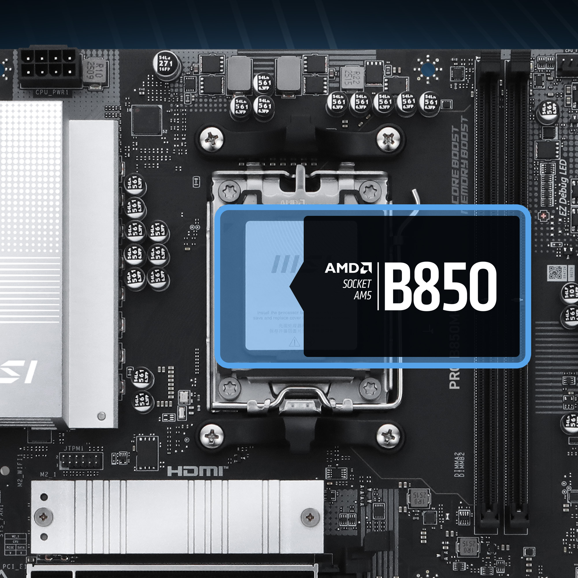 PRO B850M-G anakart AMD Ryzen 9000 / 8000 / 7000 serisi işlemcileri destekler.