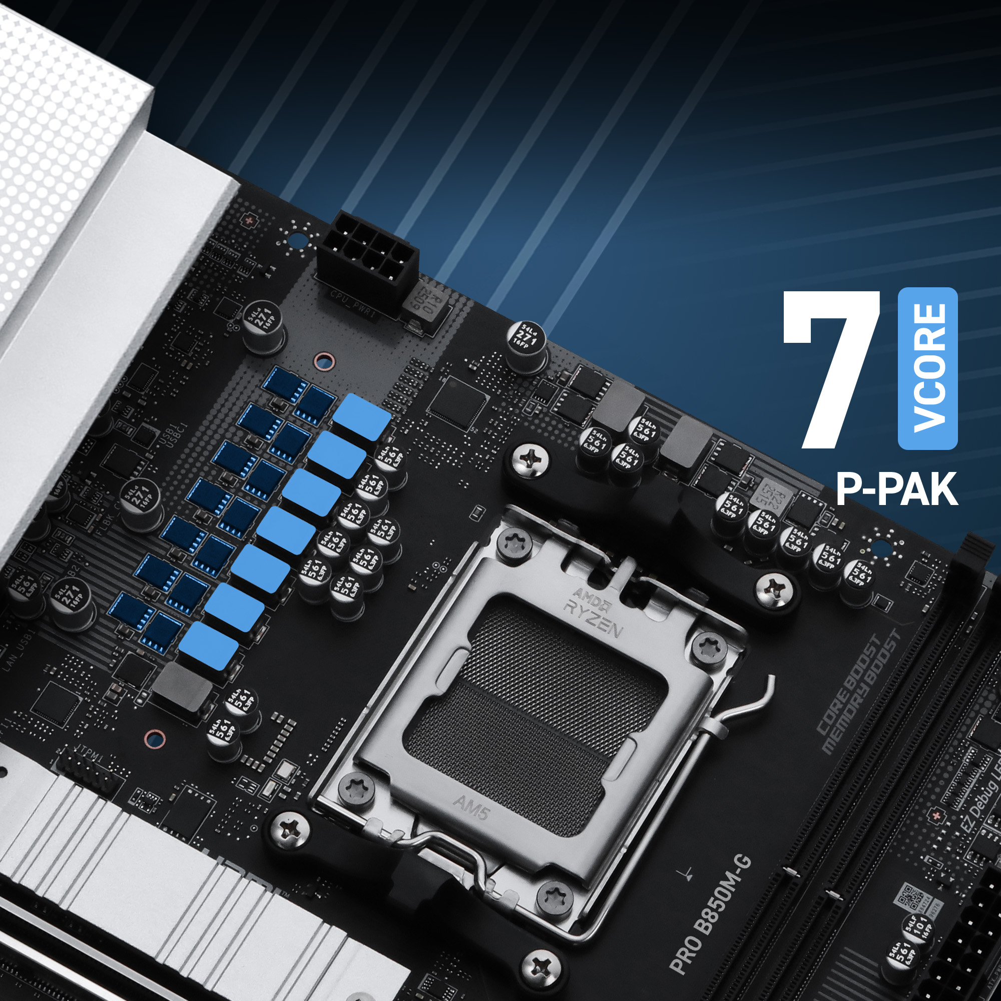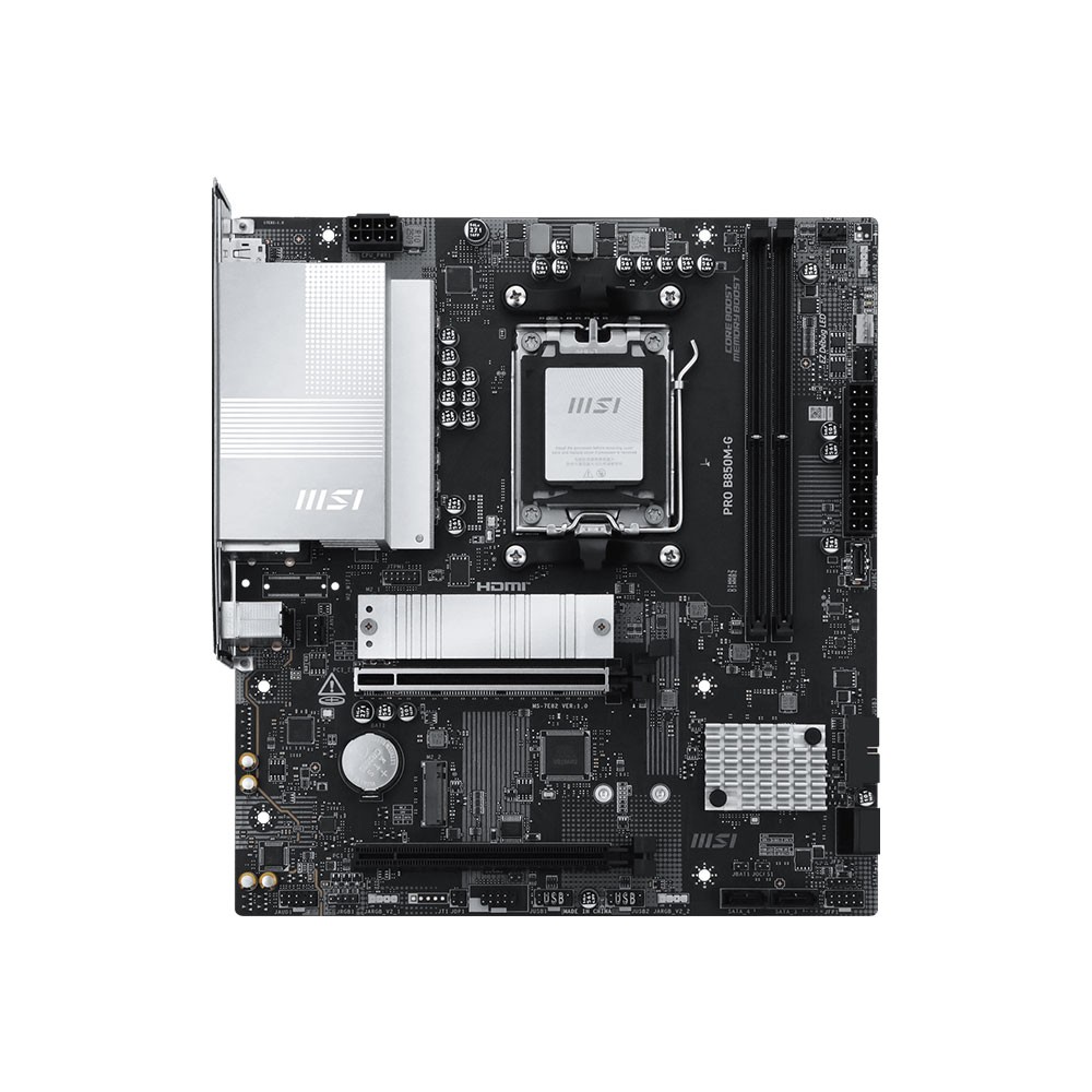 Direkt 7 fazlı VRM tasarımına sahip iş odaklı bir mATX anakart olan PRO B850M-G, en yeni AMD B850 yongaseti ile AMD Ryzen 9000 / 8000 / 7000 serisi masaüstü işlemcileri destekler. PCIe 5.0, 5G LAN, DDR5 ve Frozr tasarımı ile birçok yeni ve yenilikçi donanıma destek verir.