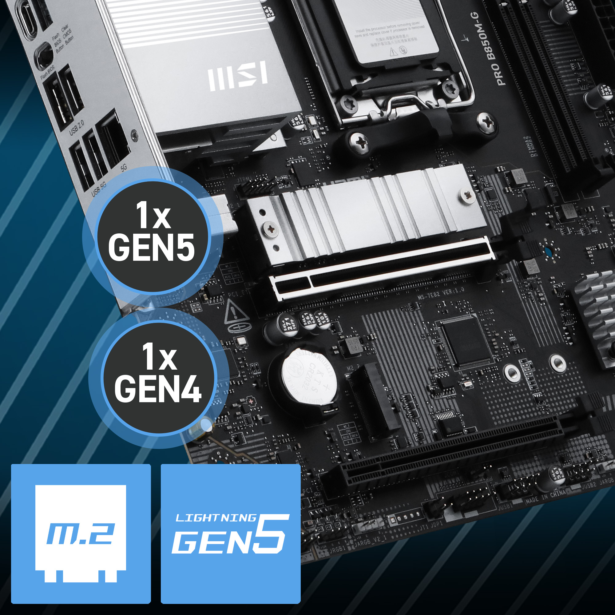 The PRO B850M-G anakart MSI'ın M.2 slotlarına sahiptir: