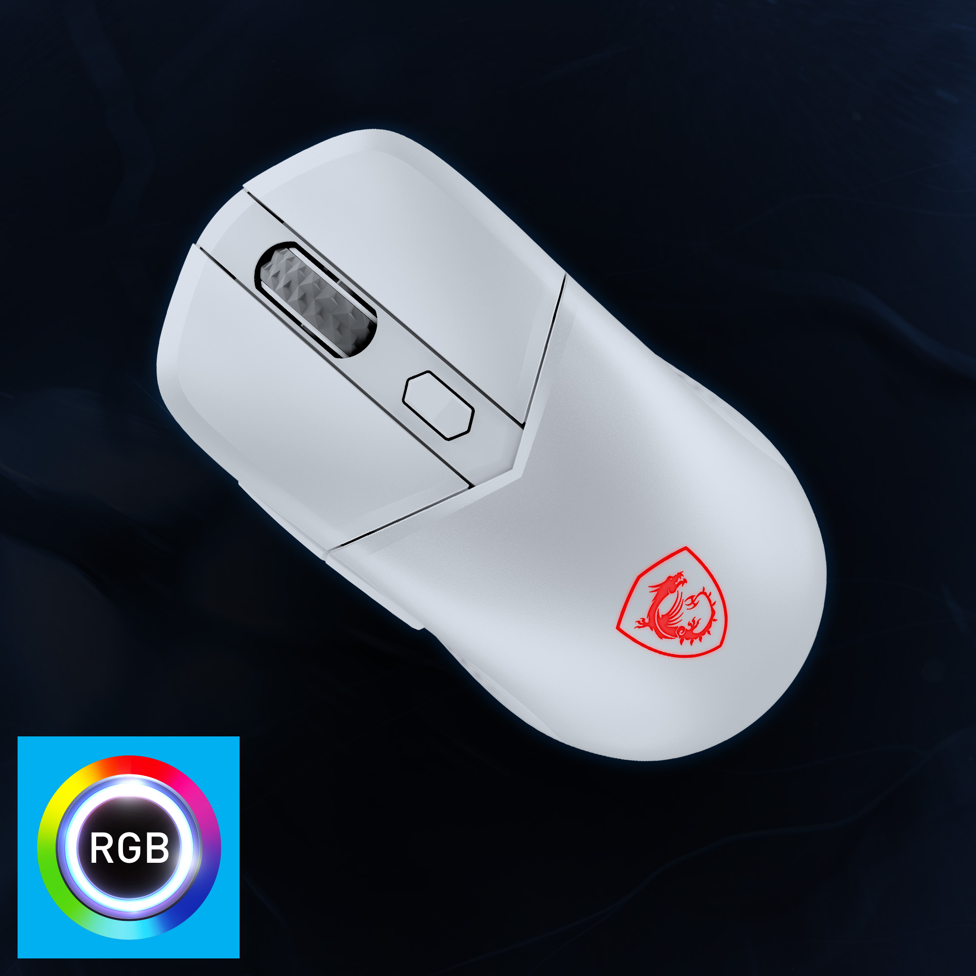 MSI VERSA 300 ELITE WIRELESS WHITE RGB PixArt PAW3395DM BT/Kablosuz 26000DPI Gaming Mouse