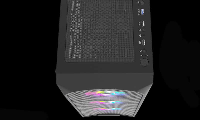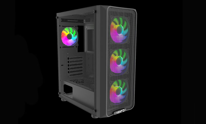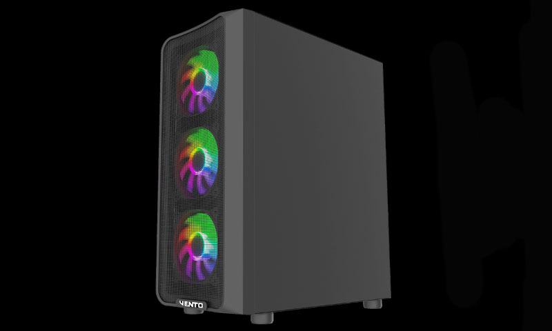 Vento VG10F, önden bakıldığında gücünü belli eder! Şık metal ön paneli ve agresif tasarımıyla tam bir oyuncu kasası görünümü sunar. 3 adet 12 cm ön ve 1 adet 12 cm arka RGB fan sayesinde hem etkileyici bir ışık gösterisi hem de üstün soğutma performansı bir arada sunulur.