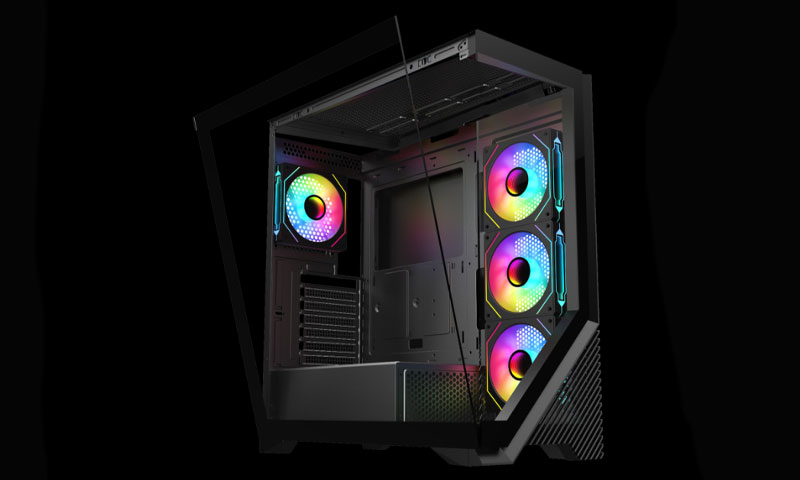 Cam tasarımlı ön panel, sadece estetik değil, aynı zamanda performans odaklı. RGB fanlarınızın ışıklarını daha net gösterirken, kasa içi hava dolaşımını da maksimum seviyeye taşır.